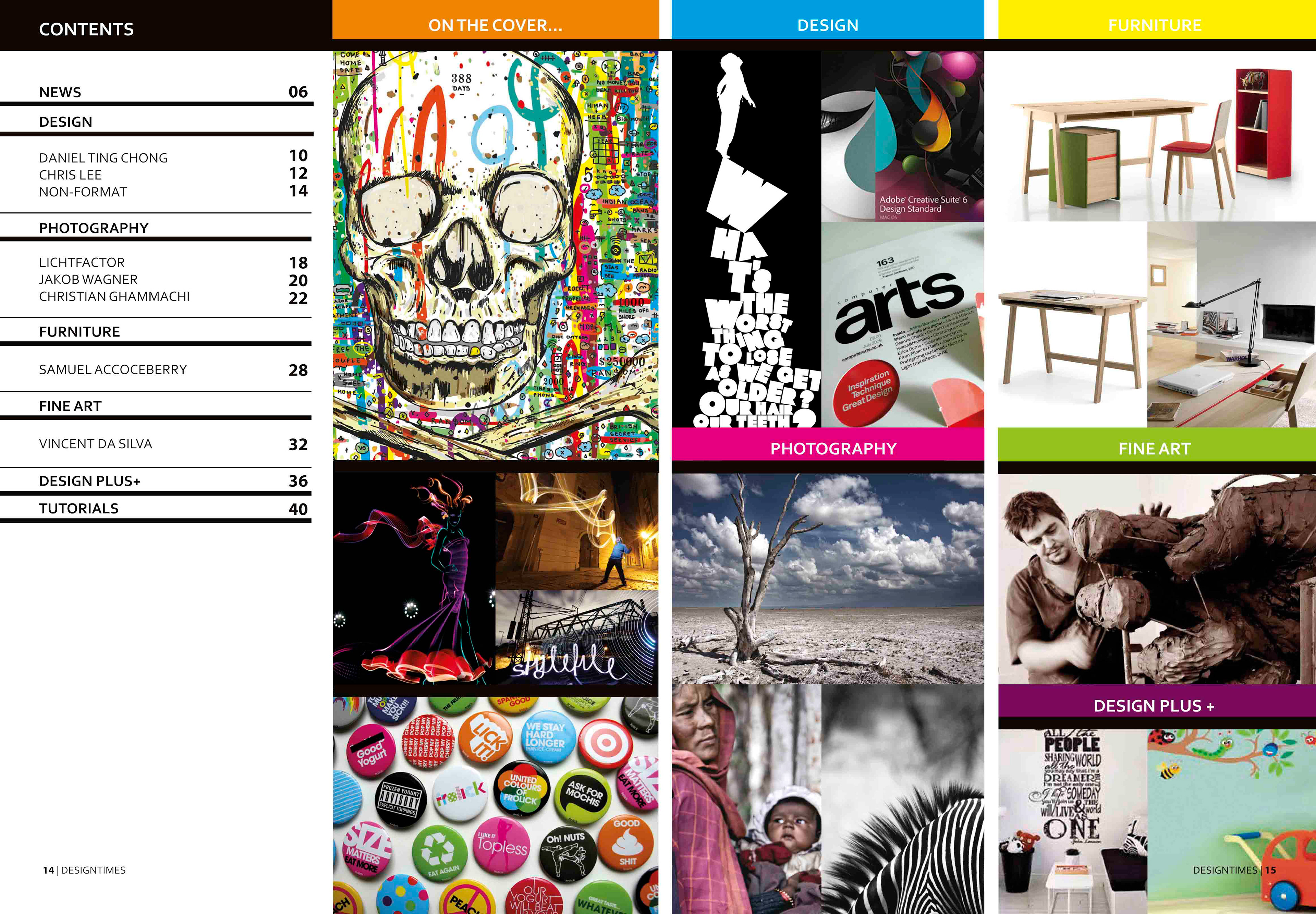 Redesign uni project of the Design Times from its traditional newspaper format into a youthful magazine with a new logo and re-positioned target audience of young designers.